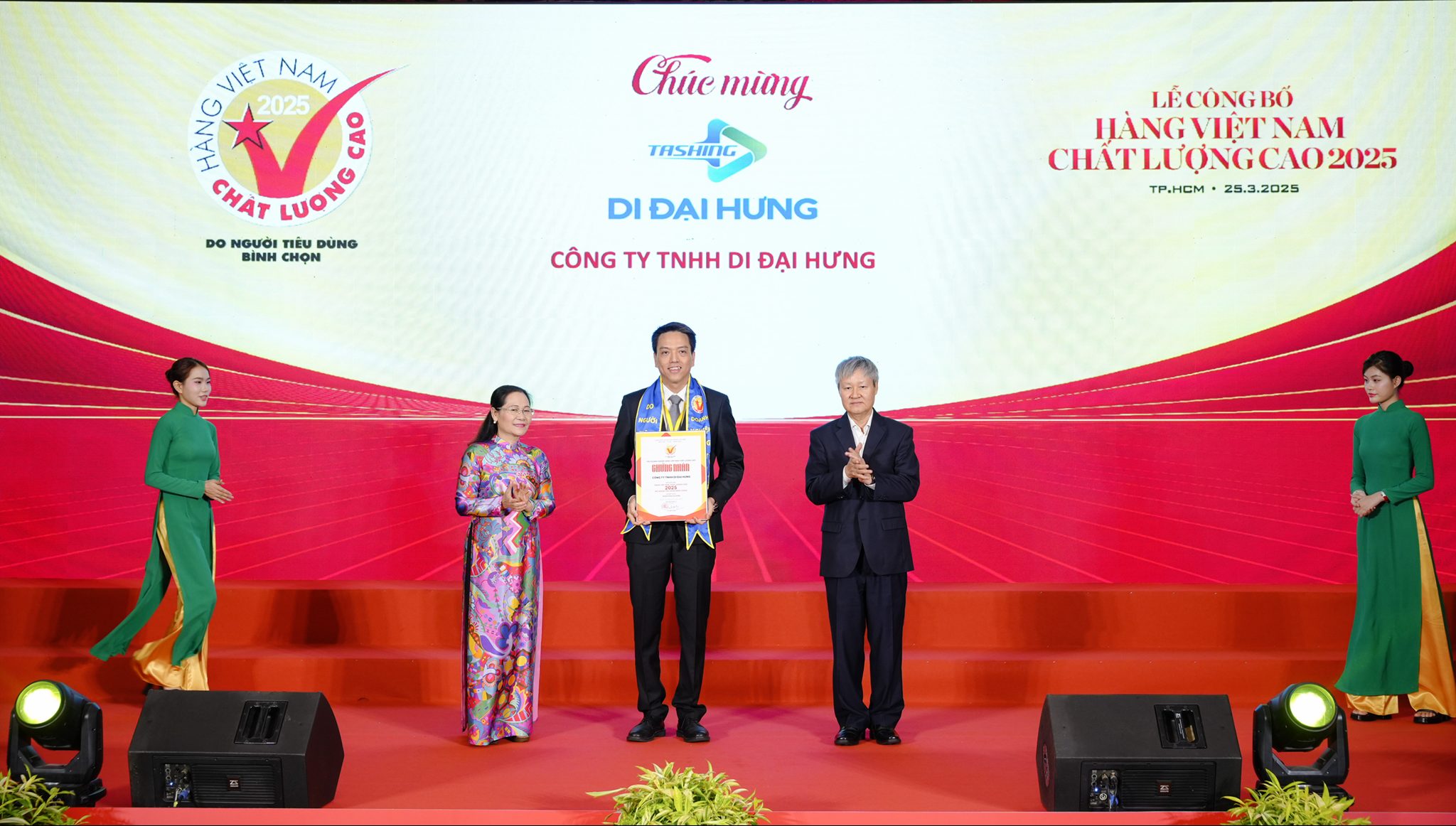 Lễ công bố và trao chứng nhận Hàng Việt Nam Chất Lượng Cao năm 2025 được tổ chức tại Dinh Thống Nhất (Q.1, TP.HCM) vào ngày 26/3/2025. Sự kiện quy tụ các doanh nghiệp xuất sắc nhất trong năm, đại diện các cơ quan chức năng và các vị khách quý. Tại buổi lễ, Công ty TNHH Di Đại Hưng vinh dự được nhận chứng nhận này từ Ban tổ chức.